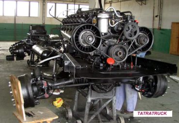 Kompletne zrenovovaný podvozok Tatry 111, fotografované 29.8.2003 o pol dvanástej doobeda, teda presne týždeň zostáva do premiéry...