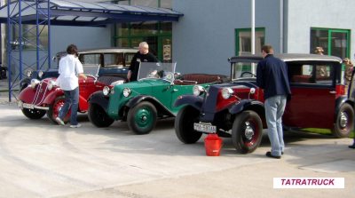Na druhý deň 1.mája 2004 sa konal prvý ročník Prvomájovej Tatra veteran rallye Bratislava. Príprava účastníkov.