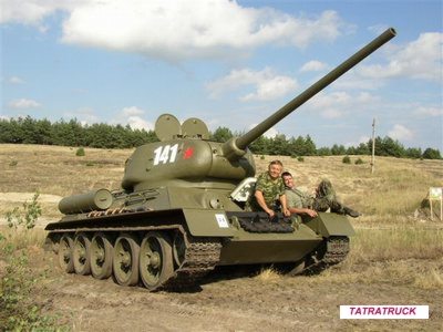Dvaja tankisti bez psa. Motor T 34 nečakane zhasol, a keď dorazila prvá pomoc s UAZOM Sanita, tak Štefana Drátka nenapadlo nič iné len to že či máme štartovacie káble ktorými by sme im natočili motor....