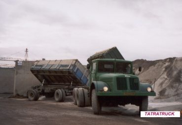 Po príjazde do betonárky prišlo na rad vyklopenie nákladu na korbe Tatry aj prívesu, čo Tatra zvládla na výbornú