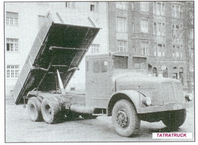 Třístranný sklápěč na podvozku 8000/111, pravděpodobně firma Meiller
